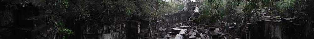 Beng Mealea (Khmer: ប្រាសាទបឹងមាលា, Prasat Boĕng Méaléa [ɓəŋ miəliə], "Temple of Lotus Pond"),[1] or Boeng Mealea, is a temple from the Angkor Wat period[2]: 118–119 located 40 km (25 mi) east of the main group of temples at Angkor, Cambodia, on the ancient royal highway to Preah Khan Kompong Svay.
