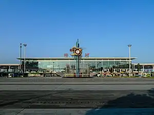 The station is a 20,000 sq. m facility, designed by architects from the University of Southern California.[2] Although presently the new station is located in a rather rural area outside of the city's urban core, development plans provide for a 9.27-km2 "high-speed railway station district" around the station.[2]