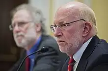 In the 2000 and 2004 election cycles, Ginsberg served as national counsel to the Bush-Cheney presidential campaign.[3] In 2000, he played a central role in the Florida recount.[3] He also represents the campaigns and leadership PACs of numerous members of the Senate and House, as well as the Republican National Committee, National Republican Senatorial Committee and National Republican Congressional Committee.[3] He serves as counsel to the Republican Governors Association and has wide experience on the state legislative level from directing Republican redistricting efforts nationwide following the 1990 Census and being actively engaged in the 2001-2002 round of redistricting.[3] In Jay Roach's Recount (about the 2000 election), Ginsberg is played by Bob Balaban.