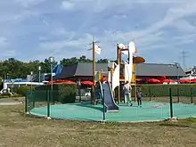 There is also a small supermarket, McDonald’s and a Starbucks.[2]