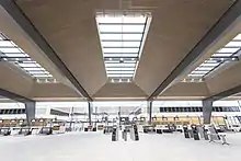 The main terminal covers an area of 21,000 square meters (230,000 sq ft), of which 14,200 square meters (153,000 sq ft) is used for passenger areas. The terminal has reached its capacity for simultaneous passengers, and especially security, check-in, arrival hall and baggage handling have limited space.[7]: 27