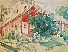 Bernadine Custer (June 16, 1900 - November 2, 1991), also known as Bernadine Custer Sharp and Mrs. A.E. Sharp[1] was a 20th-century American painter, illustrator and WPA muralist who worked in New York City and Vermont. Her artistic style has been described as "American Regionalism" and often features genre paintings and watercolors inspired by her neighbors and surroundings. Her work has been compared to other artists of her generation such as Thomas Hart Benton, Grant Wood, and Norman Rockwell.[2]
