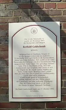 Goldschmidt was born in Hamburg, Germany in 1903. His musical career began in earnest during the heyday of the Weimar Republic. While studying philosophy at the University of Hamburg, he was encouraged by the Italian composer Ferruccio Busoni to write music. In 1922, Goldschmidt entered the Berlin Hochschule für Musik and joined Franz Schreker's composition class, where his fellow pupils included Ernst Krenek, Alois Hába, Felix Petryek, and Jascha Horenstein. He also studied conducting, played freelance for the Berlin Philharmonic Orchestra, and in 1923, coached the choir for the Berlin premiere of Arnold Schoenberg's Gurre-Lieder. In 1925, Goldschmidt achieved his first major success with his Passacaglia, Op. 4, which earned him the prestigious Mendelssohn Prize. Hailed as one of the brightest hopes of a generation of young composers, Goldschmidt reached the premature climax of his career with the premiere of his opera Der gewaltige Hahnrei in Mannheim in 1932.