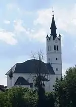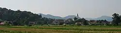 The parish church in the settlement is dedicated to the Exaltation of the Holy Cross and belongs to the Ljubljana Archdiocese.[6] The church was recorded as a chapel of ease associated with the parish of Vrhnika in 1689. The village cemetery formerly surrounded the church, but it was discontinued at that location in 1859 and a new cemetery was established to the south in the hamlet of Za Ježe. The cemetery was expanded and a new funeral chapel was built in 1994.[5]