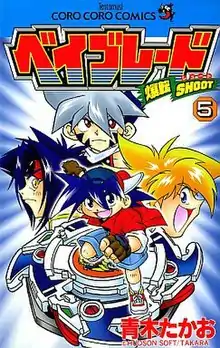 Beyblade, known in Japan as Explosive Shoot Beyblade (Japanese: 爆転シュートベイブレード, Hepburn: Bakuten Shūto Beiburēdo), is a Japanese manga series written and illustrated by Takao Aoki to promote sales of spinning tops called "Beyblades" developed by Takara Tomy. The series focuses on a group of kids who form teams, which battle one another using Beyblades. Originally serialized in Shogakukan's CoroCoro Comic from September 1999 to July 2004, the individual chapters were collected and published in 14 tankōbon volumes and was licensed for English-language release in North America by Viz Media. It was licensed for English releases in Singapore and in Australia and New Zealand by Chuang Yi.