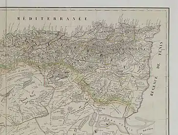 Map of the Provinces of the Regency of Algiers. The Beylik of Constantine is the easternmost, between Titteri and Tunis.