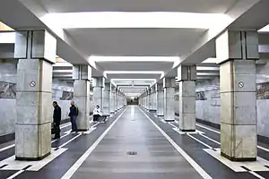 Bezymyanka (Russian: Безымянка) is a station on the First Line of the Samara Metro. It opened on 26 December 1987 as one of the four initial stations on the line.[1] It is in the Sovetsky district of Samara at the intersection of Ulitsa Pobedy and Novo-Vokzalnaya Ulitsa. Its name comes from a railway station located 700 m southeast and literally means "unnamed".