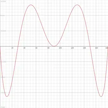The formula is applicable for values of x° in the range from 0° to 180°. The formula is remarkably accurate in this range. The graphs of sin x and the approximation formula are visually indistinguishable and are nearly identical. One of the accompanying figures gives the graph of the error function, namely, the function