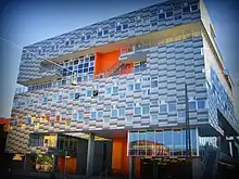 Opening in August 2006, Bikuben Kollegium is located on the corner of Amager Fælledvej and Njalsgade next to the University of Copenhagen's South Campus.[1] The dorm was designed by the Aart Architects, an Aarhus based firm having as its ambition to make new forms of student communities possible. Kitchens and common areas are thus distributed on various floors, facing an inner yard.[2]