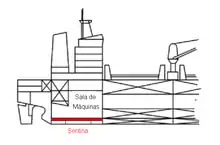 Bilges may contain partitions to damp the rush of water from side to side and fore and aft to avoid destabilizing the ship due to the free surface effect. Partitions may contain limber holes to allow water to flow at a controlled rate into lower compartments.[7]