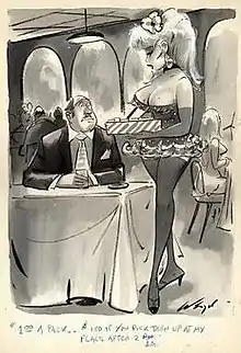 His bawdy cartoon spot illustrations were published over the course of several decades, from such publications as Judge in the 1940s to Sex to Sexty in the 1960s and 1970s, and particularly for the Humorama division of publisher Martin Goodman's variously titled corporations.[5] Wenzel's work, which featured busty, big-eyed, yet innocently risque young women, was published in such magazines and digests as Gaze, Joker, Jest, Comedy, and Stare. Most captions were written by the artist himself.[5] In 1967 Wenzel drew illustrations for the book Coffee, Tea or Me? that, according to the author Donald Bain, "contributed significantly to the book's success".[6]