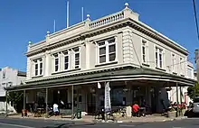 By the turn of the century, Birkenhead had developed into three centres: suburban Birkenhead, rural Birkdale and Chelsea, adjacent to the refinery.[53] The factory provided steady work for the community,[54] employing a third of the workforce of Birkenhead, and allowing farmers and orchardists stability in years with poorer crops.[60] The ferry service brought new residents to the area who commuted to Auckland for work, although fewer than neighbouring Devonport; only three stores were located in Birkenhead in 1901.[61] The Birkenhead ferry developed a café atmosphere for the commuters, which included string instrument players, and a smokers cabin, where man of Birkenhead discussed politics.[61]