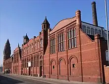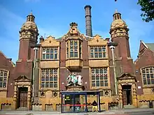 Kent Street Baths were the first baths opened by the committee. Construction began on 29 October 1849, with the laying of the first foundation stone.[3] The baths were opened on 12 May 1851,[3][4] however, the baths were not completed until 1852. The building was designed by D. R. Hill.[5] The baths were close to the town centre and so received a good amount of water. However, this supply of water posed a problem to builders of the baths who found it difficult to prevent water from entering and flooding the construction site. The final cost of the baths was £23,000.[3]
