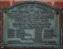 Plaque on Harborne Baths, showing membership of the committee as at December 1923.