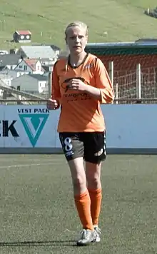 ![]() Birna Johannesen is a Faroese football player. Here she is playing for Skála ÍF against FC Suðuroy in 2012. | |||