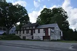 The main mill building started in 1823 as a single 2+12-story gable-ended wood frame block measuring 30 feet (9.1 m) by 24 feet (7.3 m). This was extended eastward in the 1850s with the addition of a second block, 20 feet (6.1 m) by 24 feet (7.3 m). The two sections were joined by their end gables, although at slightly different elevations. Both sections were originally on fieldstone foundations; these have been replaced in part with modern concrete, and in part strengthened by the addition of concrete. A third section was added to the building between 1888 and 1829. Measuring 12 feet (3.7 m) by 58 feet (18 m), this section had a shed roof, and was added to the south side of the main blocks. A fourth major addition was made in 1954, when another large section was added to the north side of the building.[2]