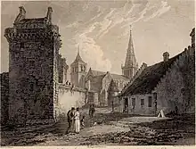 The Bishop's Castle (also known as Glasgow Castle, the Bishop's Palace, and the Archbishop's Palace) was a medieval castle in Glasgow, Scotland. It stood to the west of Glasgow Cathedral, covering much of the present day Cathedral Square. The castle served as the residence of the Archbishops of Glasgow until 1689.[1] Following the Glorious Revolution, the castle became the property of the Crown. It fell into disrepair during the 18th century, having been used as a quarry from 1755, and the site was cleared in 1789 to make way for the Glasgow Royal Infirmary.