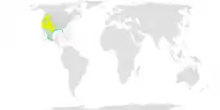 Black-chinned hummingbirds are found in most of the western United States, reaching north into Canada in Alberta and British Columbia, east to Oklahoma, and as far south as Mexico.[3] They can be found in mountains, woodlands, orchards, meadows, and chaparral habitats. Their breeding habitat is open, semiarid areas, usually near water in the western United States, northern Mexico, and southern British Columbia. They may inhabit moist environments like orchards, shaded canyons, and riparian woods.[14] The males and females of this species use different habitats from one another for breeding territories.[15]