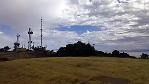 Black Mountain is a summit on Monte Bello Ridge in the Santa Cruz Mountains of west Santa Clara County, California, south of Los Altos and Los Altos Hills, and west of Cupertino; it is within the Palo Alto city limits though not near the developed part of the city.[2] It is located on the border between Rancho San Antonio Open Space Preserve and Monte Bello Open Space Preserve, with the summit located in the former. Early Spanish explorers commonly named tree- or chaparral-covered summits which look black in the distance Loma Prieta, from the Spanish (loma-hill, prieta-dark).[3] The Spanish also called the middle portion of the Santa Cruz Mountains the Sierra Morena meaning (morena-brunette, sierra-mountain range), extending from Half Moon Bay Road (California State Route 92) south to a gap at Lexington Reservoir, and which includes a summit called Sierra Morena.[4][5][6] There are over 100 "Black Mountains" in California.[7]