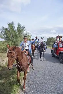 Present-day riding clubs in major cities include the Compton Cowboys in the Los Angeles area, Oakland Black Cowboy Association, Fletcher Street Urban Riding Club in Philadelphia, and New York City Federation of Black Cowboys. Other riding clubs include Circle L 5 in Fort Worth, Texas, founded in the early 1950s, and Cowgirls of Color.[13][19] In Louisiana and Texas, African-American trail rides celebrate and preserve the history of Black cowboys.[20] Photojournalist Rory Doyle has photographed many Mississippi Delta-area riders in his "Delta Hill Riders" project.[21]