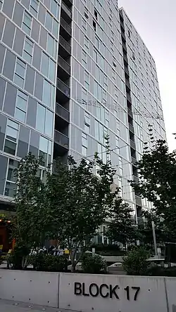 Block 17 is a luxury high-rise apartment building in Portland, Oregon's Pearl District. Opened in 2015, its 16 stories contain a total 285 units. With some units sold for up to $3.74 per square foot, they are some of the city's most expensive.[1] Some of its units are rented as hotel rooms, in violation of existing regulations and to the dissatisfaction of renters.[2]