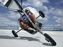 Blokarts are considered human-powered, as movement is initiated through manual resistance on the sheet rope, and wind does not actually propel them but it is the pressure difference created on either side of the sail when the sheet rope is pulled (high pressure on the side towards the wind, and low pressure on the side away from the wind).[3] Likewise, releasing the sheet rope will cause the blokart to come to a stop. Disc brakes are also available to aid in immediate stopping. Blokarts are not defined as vehicles under most existing regulations, and Transport Canada defines a sailboat as being a Human Powered Craft.[4]