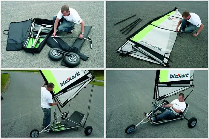 They can be quickly disassembled and packed into a carry-bag giving them a high degree of portability and are designed to be particularly easy to learn to sail and safe to use. Leisure sailing is common on beaches, gravel, grass and other flat surface in many parts of the world - but Blokart racing is also developing as a competitive international sport, with organised racing including national championships in several countries and a biennial world championship. Since 2015, the America’s Cup community sailing initiative, Endeavour, has used Blokarts to begin training sailors as young as 8 years old.[2] Blokarting programs and academies also train parapalegic and other disabled sailors that have lower body limitations, as Blokarting relies on upper body muscular ability similar to a wheelchair.