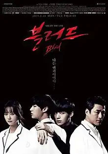 Blood (Korean: 블러드; RR: Beulleodeu) is a 2015 South Korean television series starring Ahn Jae-hyun, Ji Jin-hee, Koo Hye-sun, and Son Soo-hyun.[1][2][3][4][5] It aired on KBS2 from February 16 to April 21, 2015 on Mondays and Tuesdays at 22:00 for 20 episodes.
