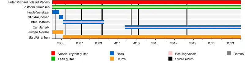 - Pete Evil (Peter Michael Kolstad Vegem) – vocals, rhythm guitar (2004–present)