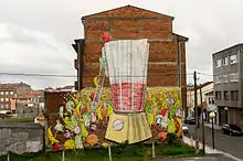 In 2007, Blu went to London for the first time, where he made many pieces around Camden Town and Willow Street and at the former headquarters of the art gallery website Pictures on Walls.[14] That same summer, he took part in a two-man exhibit with Ericailcane at the Lazarides Gallery.[15] The following year, the Tate Modern[16] presented an exhibition on the phenomenon of street art and invited Blu,[17] along with JR,[18] Faile, Sixeart, and Os Gêmeos[19] e Nunca, to paint its entire main façade.[20]