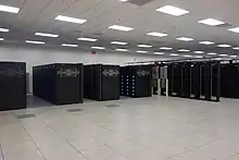 Blue Waters ran science and engineering codes at sustained speeds of at least one petaFLOPS. It had more than 1.5 PB of memory, more than 25 PB of disk storage, and up to 500 PB of tape storage.[4] The storage filesystem was the Cray Lustre parallel file system, which is capable of terabyte-per-second storage bandwidth. It was connected with 300 Gbit/s wide area links.[5]