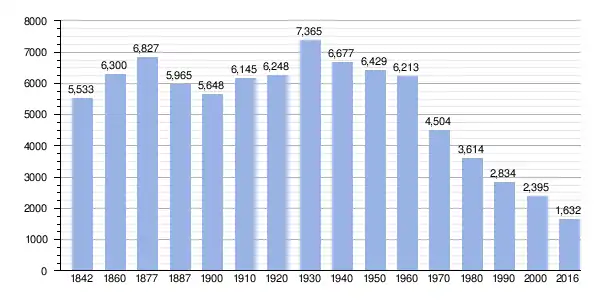 During the first decades of the 19th century the municipality of Boal kept a slow increase of population that was noticeably accelerated with the construction of the dam of Doiras in 1930, reaching in that year its historical maximum of 7,365 inhabitants. The relatively high levels of population remained until 1960, not just because of the dam but also because of the tungsten mining near Penouta and because of the existence of traditional agriculture requiring a lot of labor. Thanks to all these factors, the municipality of Boal could be once the most populous one in the middle course of the Navia River. Nevertheless, from 1960 on and due to the closing of mines and to the changes experienced by the traditional agriculture, a very important migratory flow started.