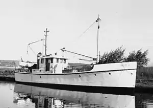 ![]() | Aklavik | 1923 | Motor schooner (18 m (58 ft) long, 4.9 m (16 ft) beam, 1.5 m (5 ft) draft, Fairbanks-Morse diesel engine) built in Fort Smith 1923 by George Askew, and used by the Hudson's Bay Company in the western Arctic Ocean and Mackenzie Delta from 1923 to 1928, followed after salvage and repairs with service in the Northwest Passage to Cambridge Bay and King William Island. In 1942 it was sold to Patsy Klengenberg, son of Christian Klengenberg, of Cambridge Bay. It was destroyed by fire on August 31, 1946, in port at Cambridge Bay, killing Patsy Klengenberg.[6][7][8] |