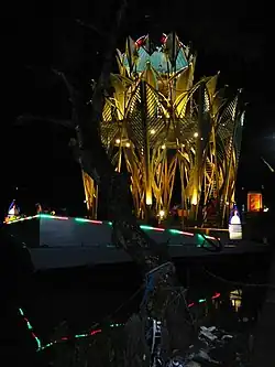 The highlight is the fluvial procession with the pagoda as its centrepiece.[7] The Cross itself, or a replica, is placed on top of the pagoda for this procession.[5] A custom is the ligiran (from the word "surround"), where smaller boats encircle the pagoda.[8] The Lutina or nine-day novena is also held, while the municipal government also hold other entertainment events as part of the festivities.[7]