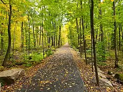 It has an area of about 97 hectares.[2] It has about 1.8 kilometres (1.1 mi) of hiking trails.[3]