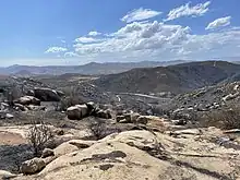 The Border 32 Fire was a destructive wildfire that burned amid the 2022 California wildfire season, in the Barrett Junction area along Highway 94 due north of the United States-Mexican border in San Diego County, California during a statewide heatwave. The fire started on August 31, 2022, and proceeded to destroy ten structures and eventually grow to 4,456 acres (1,803 ha) within the rugged chaparral-dense hillsides throughout the area.[2]