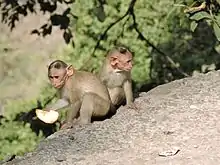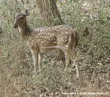 The forest cover in the park helps provide the ideal habitat for many wild animals. Chital (or spotted deer), rhesus macaque and bonnet macaque are some of the wild mammals often spotted inside the park. Other large mammals found in the park include black-naped or Indian hare, muntjac (barking deer), porcupine, Asian palm civet, chevrotain (mouse deer), Hanuman or grey langur, Indian flying fox, sambar deer and leopard.