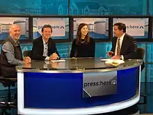 ![]() From left, Brad Mattson with Jon Swartz of USA Today, Sarah Frier of Bloomberg, and NBC anchor Scott McGrew on his show Press:Here. | |