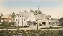 Parts of the town are hilly, but the largest portion is in a valley with varied soil. Streams provided water power for watermills. By 1859, when Bradford's population reached 1,341, industries included one woolen mill, one sash, blind and door factory, one wheelwright shop, two sawmills, one gristmill, one tannery, and one clothing mill.[5] In 1850, the Concord & Claremont Railroad opened from Concord to Bradford, which would remain its terminus until the line was extended to Claremont in 1871–1872.[6]