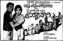 Brahmachari (transl.Bachelor) is a 1968 Indian Telugu-language comedy drama film, produced by A. V. Subba Rao under the Prasad Art Productions banner and directed by T. Rama Rao. The film stars Akkineni Nageswara Rao and Jayalalithaa, with music composed by T. Chalapathi Rao. It was released on 1 February 1968.[1] The film was remade in Hindi as Ek Nari Ek Brahmachari (1971).[2] It was loosely based on the 1967 Tamil movie Penne Nee Vaazhga.
