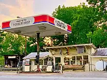The Possum Drop was an annual event at Clay's Corner convenience store organized by Clay and Judy Logan.[8] At midnight on New Year's Eve, instead of dropping an object, a plexiglass box containing a living opossum was lowered from the roof of the store.[9] At midnight the animal was lowered to the ground while a small crowd of local residents sometimes shot fireworks.[10] The opossum was released afterward.[11]