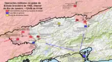 Two moments gave rise to interpretations of coup intentions by the president. In 1962 the commander of the Third Army declared himself incapable of maintaining order if Congress did not anticipate the parliamentary plebiscite, which was added to other pressures. The following year, during the request for a state of emergency, troops took to the streets in Recife and an operation by paratroopers against Carlos Lacerda was denounced; there would thus be intervention against the rightist governor of Guanabara and the leftist governor of Pernambuco, Miguel Arraes. At that moment, the left also denounced a coup by the president.[141][142][143] In March 1964, the president's proposals were received with great suspicion: the right to vote for the illiterate, a plebiscite for reforms, the delegation of legislative powers to the Executive and a revision of the electoral law would open a loophole for competition from blood relatives and the like, such as Brizola (the president's brother-in-law), and would even allow re-election.[18]