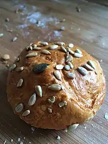 Words for bread, including "dough" and "bread" itself, are used in English-speaking countries as synonyms for money.[58] A remarkable or revolutionary innovation may be called the best thing since "sliced bread".[68] The expression "to break bread with someone" means "to share a meal with someone".[69] The English word "lord" comes from the Anglo-Saxon hlāfweard, meaning "bread keeper."[70]