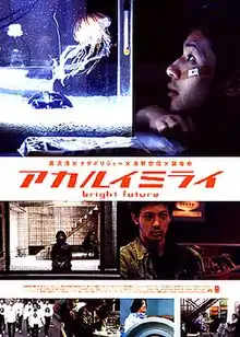 Bright Future (アカルイミライ, Akarui Mirai) is a 2003 Japanese drama film written and directed by Kiyoshi Kurosawa, starring Tadanobu Asano, Joe Odagiri and Tatsuya Fuji. It was entered into the 2003 Cannes Film Festival.[2]