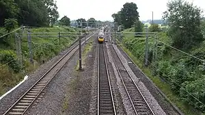 ![]() View of the former station site in 2017, looking SE, towards Rugby and London | |