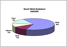 The ethnic/racial composition of Broad Run's student body in the 2006–2007 school year was 64% White, 11% Black, 11% Hispanic, and 14% Asian.[18]