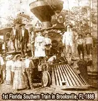 Their hopes were raised when the Florida Southern Railroad was incorporated in 1879 for the purpose of striking a line from Central Florida to Charlotte Harbor (Port Charlotte). By 1881 it had pushed south to Gainesville and by 1885 it was at Pemberton Ferry, near Croom, just ten miles east of Brooksville. But the railroad had no plans to extend to Brooksville.[4]