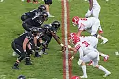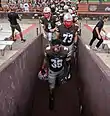 In the middle of the 1926 season, the “Iron Men” came into being when the same 11 players played against Yale for 60 minutes and a 7–0 win. The next week the same 11 players played without substitution against Dartmouth and won 10–0. Two weeks later the Iron Men played 58 minutes against Harvard, but in the last two minutes the substitutes came in to earn their letters. Brown won all its games that year until the Thanksgiving game against Colgate ended in a 10–10 tie. The famed “Iron Men” were Thurston Towle ’28, Paul Hodge ’28, Orland Smith ’27, Charles Considine ’28, Lou Farber ’29, Ed Kevorkian ’29, Hal Broda ’27, Al Cornsweet ’29, Dave Mishel ’27, Ed Lawrence ’28, and Roy Randall ’28. In the 1948 season, Brown fans were the originators of the popular "de-fense!" chant that spread to the NFL in the 1950s. Following the 1981 season, the Ivy League was reclassified to Division I-AA, today known as the Football Championship Subdivision (FCS), Brown moved to Division I-AA play with the rest of the league.[2] Brown has 607 wins, making them tied for 72nd all time in wins among division one football programs.