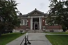 It is a brick building opened in 1906. A recent extension connects it to the building of the Northfield Historical Society, located in the former home of Charles Paine, a 19th-century governor and local businessman. Above the fireplaces in the north and south reading rooms are paintings of historic interest relating to the library and Northfield.