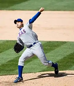 Chen pitching for the Texas Rangers in 2007
